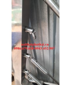 Cột trụ inox được thiết kế tinh tế, đáp ứng đầy đủ nhu cầu của khách hàng về tính an toàn và thẩm mĩ. Mặt bậc cầu thang được làm từ gỗ để đồng bộ với tay vị và trụ cầu thang