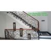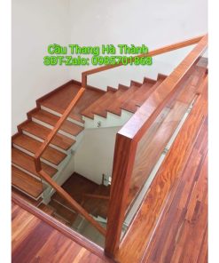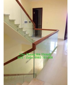 Cầu thang kính tay vịn gỗ vuông đẹp giá rẻ Cầu Thang Sắt City